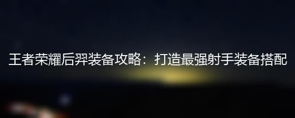 王者荣耀后羿装备攻略:打造最强射手装备搭配