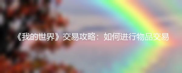以上就是为大家带来的《我的世界》交易攻略。希望通过本文的介绍,您能够更好地进行物品交易,获取所需的资源和物品。在交易过程中,记得注意交易安全,选择合适的交易伙伴和交易方式。