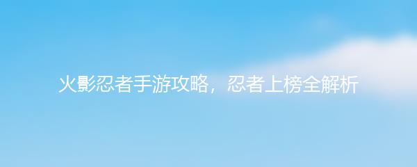 火影忍者手游攻略,忍者上榜全解析
