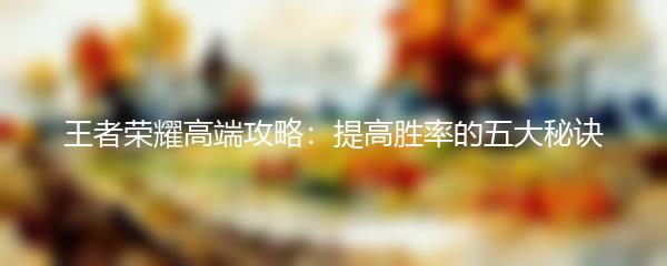 王者荣耀高端攻略:提高胜率的五大秘诀