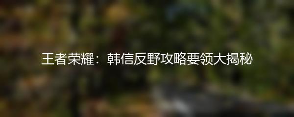 以上就是为大家带来的王者荣耀:韩信反野攻略要领大揭秘,希望对大家在游戏中使用韩信进行反野有所帮助。