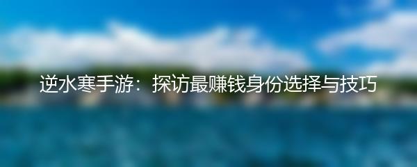 近年来,逆水寒手游在游戏界掀起了一股热潮,成为广大玩家追捧的焦点。在这个以江湖为背景的游戏世界中,玩家可以选择不同的身份来体验游戏。那么,在逆水寒手游中,到底哪种身份最赚钱?下面我们就来一探究竟。