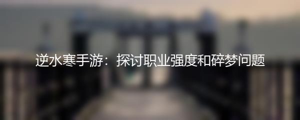 逆水寒手游一直以来备受玩家关注,其中涉及到的职业强度和碎梦问题是玩家们讨论的焦点之一。在本文中,我们将深入探讨这些问题,希望为您解惑。