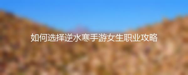 以上就是为大家带来的如何选择逆水寒手游女生职业攻略,希望对大家有所帮助。