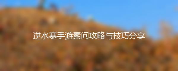 以上就是为大家带来的逆水寒手游素问攻略与技巧分享。
