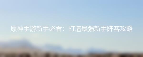 以上就是为大家带来的《原神手游新手必看:打造最强新手阵容攻略》。