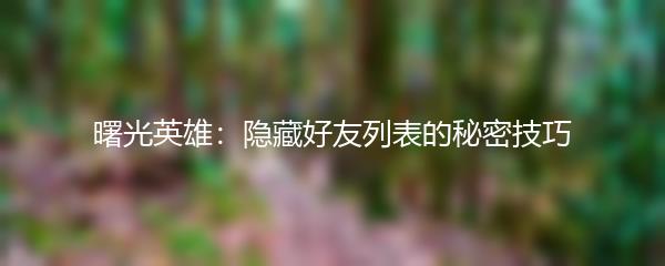 曙光英雄是一款非常受欢迎的游戏,对于很多玩家来说,好友列表是一项非常重要的功能。但是,有时候我们可能需要隐藏好友列表,保护自己的隐私。那么,曙光英雄如何隐藏好友列表呢?下面就来介绍几个秘密技巧。