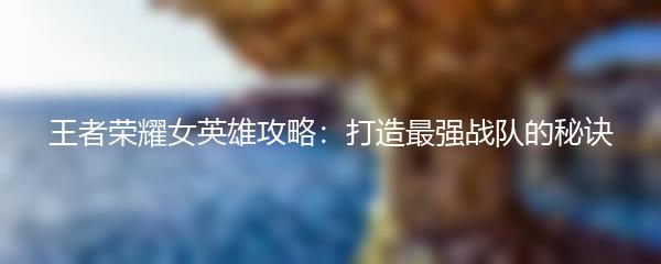 王者荣耀女英雄攻略:打造最强战队的秘诀