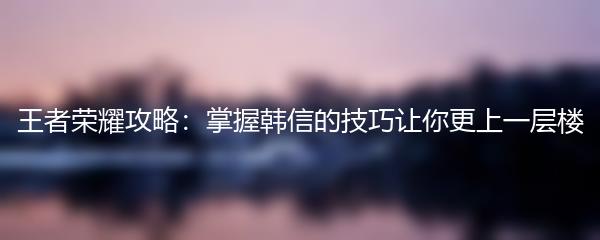 王者荣耀攻略:掌握韩信的技巧让你更上一层楼