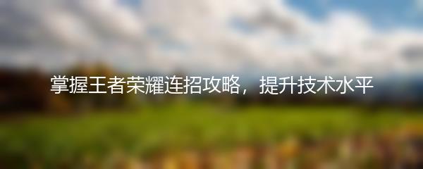 以上就是为大家带来的掌握王者荣耀连招攻略,提升技术水平。