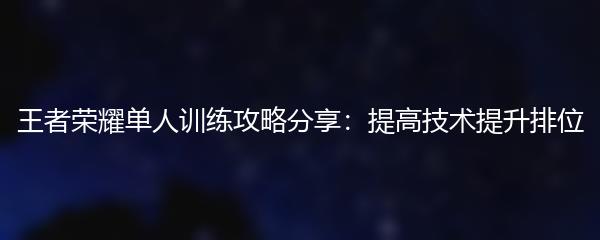 以上就是为大家带来的王者荣耀单人训练攻略分享,希望能帮助大家在游戏中取得更好的表现。