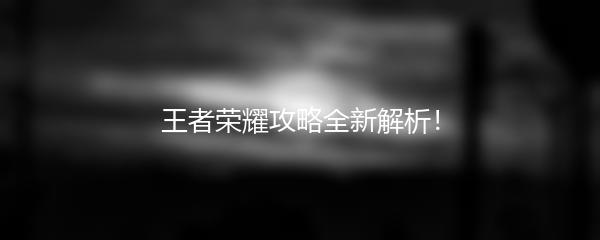 王者荣耀攻略全新解析!