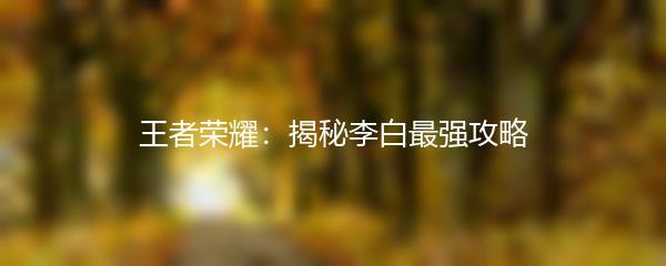 以上就是为大家带来的王者荣耀:揭秘李白最强攻略。