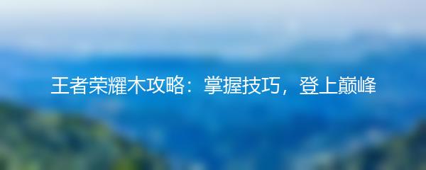 以上就是为大家带来的王者荣耀木攻略:掌握技巧,登上巅峰。