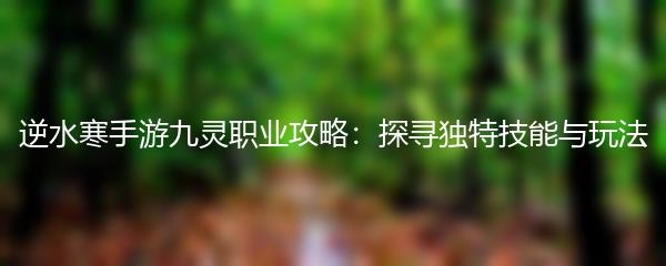 以上就是为大家带来的逆水寒手游九灵职业攻略,希望对广大玩家有所帮助。在游戏中,不断学习提升,相信你一定能够成为一名强大的九灵战士!