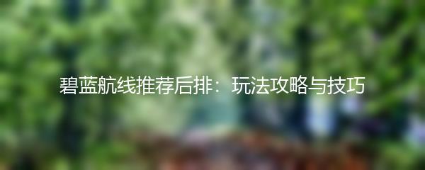 碧蓝航线是一款非常受欢迎的海战手游,玩家需要组建自己的舰队,并与敌方舰队进行战斗。在游戏中,合理配置后排舰船非常重要。本文将为大家介绍一些碧蓝航线推荐后排的玩法攻略与技巧。