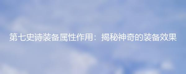 第七史诗装备属性作用:揭秘神奇的装备效果