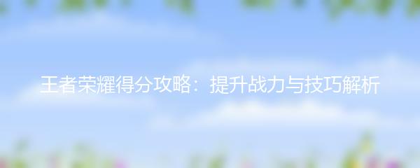 以上就是为大家带来的《王者荣耀得分攻略:提升战力与技巧解析》,通过选择合适的英雄、熟悉地图和野怪、把握团战时机、加强个人技能训练以及合理运用装备和符文,相信你能在游戏中取得更好的成绩。不断提升自己的游戏技巧和心态,享受游戏带来的乐趣吧!