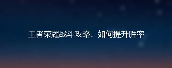 王者荣耀战斗攻略:如何提升胜率