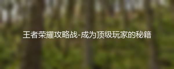 王者荣耀攻略战-成为顶级玩家的秘籍