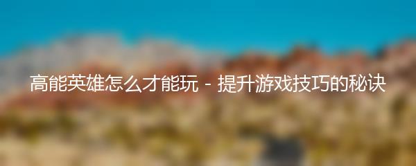 高能英雄怎么才能玩 - 提升游戏技巧的秘诀