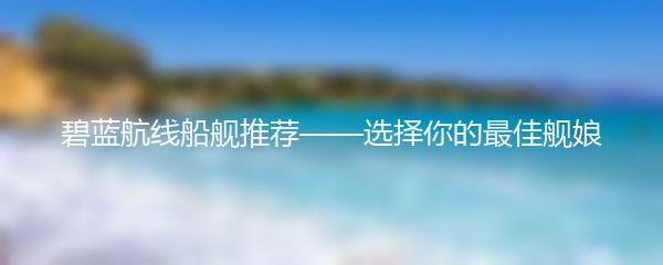 碧蓝航线船舰推荐——选择你的最佳舰娘