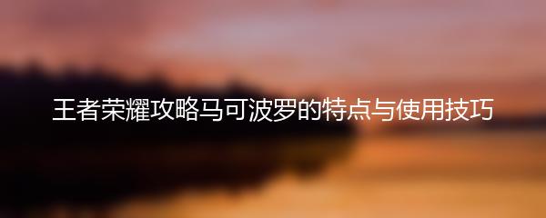 以上就是为大家带来的《王者荣耀攻略马可波罗的特点与使用技巧》的内容。