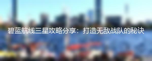 碧蓝航线三星攻略分享:打造无敌战队的秘诀