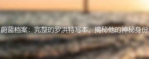 蔚蓝档案,展示了一个完整的罗洪特写本,让我们能够一窥他神秘身份背后的故事。罗洪特,一个神秘而不可思议的人物。我们一起来揭开这个神秘的面纱。