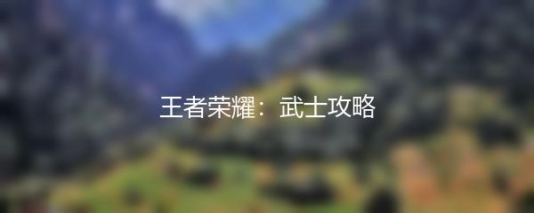 王者荣耀:武士攻略