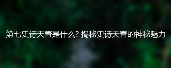 第七史诗天青是什么? 揭秘史诗天青的神秘魅力