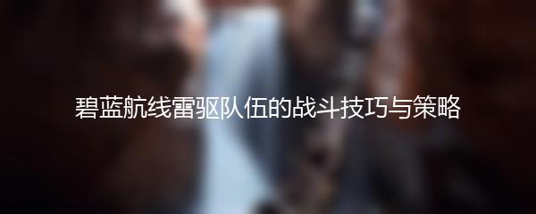 碧蓝航线雷驱队伍的战斗技巧与策略