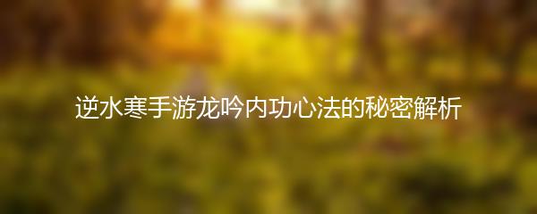 逆水寒手游龙吟内功心法的秘密解析