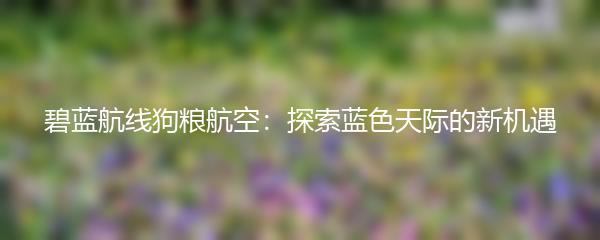 碧蓝航线狗粮航空:探索蓝色天际的新机遇