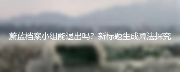 蔚蓝档案小组能退出吗?新标题生成算法探究