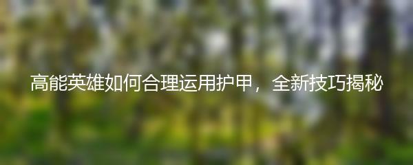 高能英雄如何合理运用护甲,全新技巧揭秘