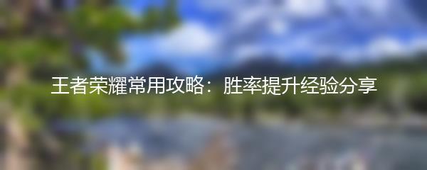 以上就是为大家带来的王者荣耀常用攻略:胜率提升经验分享。通过选择适合的英雄、熟悉地图和资源点、与队友配合默契、观察对手并灵活应对以及保持积极的心态,相信您能在王者荣耀中取得更好的战绩。玩得开心,愿您在游戏中成为一名真正的王者!