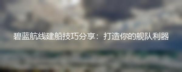 碧蓝航线是一款备受玩家喜爱的手机游戏,其中建造新舰艇是游戏中的重要环节。要打造出强大的舰队,需要一些建船技巧。本文将分享一些碧蓝航线建船的技巧,帮助你打造自己的舰队利器。