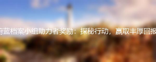 蔚蓝档案小组是一个致力于解开未解之谜的神秘组织,他们以独特的方式收集并整理着世界各地的神秘事件和奇异现象。为了更好地推进调查工作,蔚蓝档案小组特别推出了“助力者奖励计划”,为那些积极参与并贡献力量的人们提供丰厚的回报。