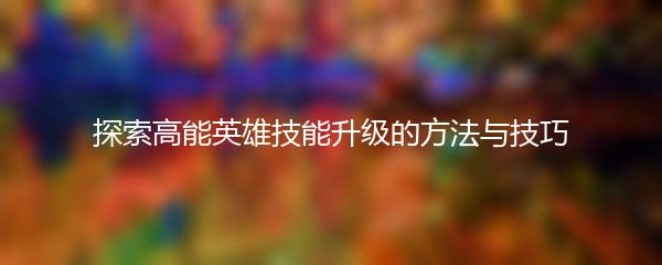高能英雄的技能升级是提升战斗力的关键。无论是新手还是老手都需要了解如何正确地提升技能,从而提高自己在战场上的竞争力。