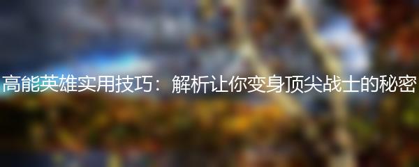 高能英雄实用技巧:解析让你变身顶尖战士的秘密