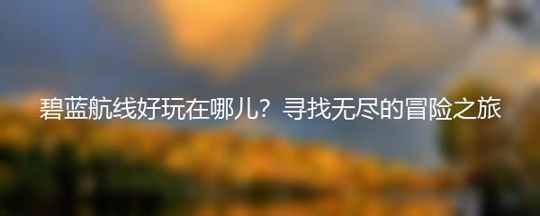 碧蓝航线好玩在哪儿?寻找无尽的冒险之旅