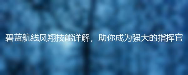 碧蓝航线凤翔技能详解,助你成为强大的指挥官