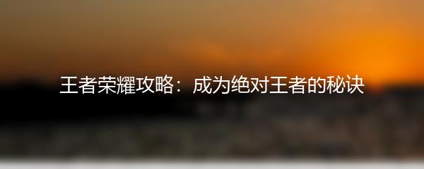 王者荣耀攻略:成为绝对王者的秘诀