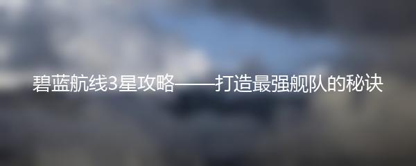 碧蓝航线3星攻略——打造最强舰队的秘诀