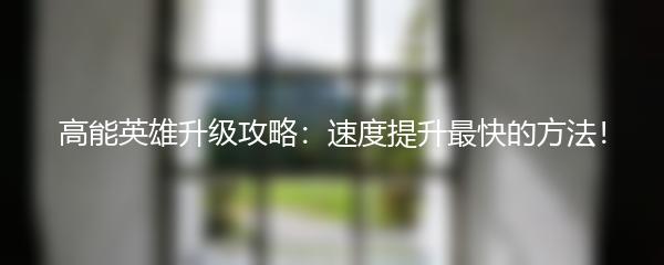 以上就是为大家带来的“高能英雄升级攻略:速度提升最快的方法!”希望对大家有所帮助,祝愿各位玩家在游戏中取得更大的成就!