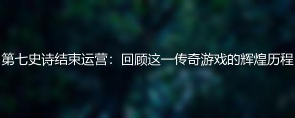第七史诗结束运营:回顾这一传奇游戏的辉煌历程