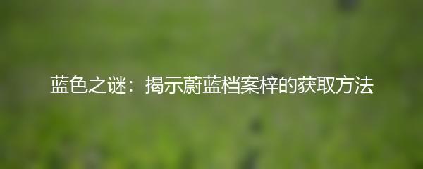 蓝色之谜:揭示蔚蓝档案梓的获取方法