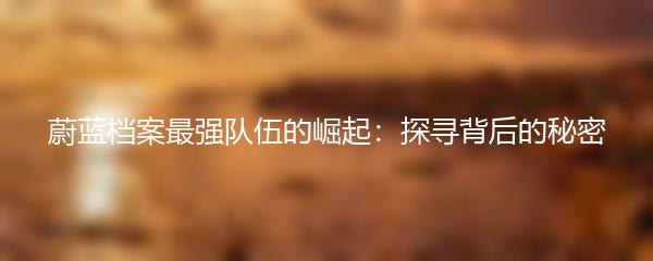 蔚蓝档案最强队伍的崛起:探寻背后的秘密