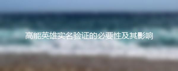 以上就是为大家带来的高能英雄实名验证的必要性及其影响。